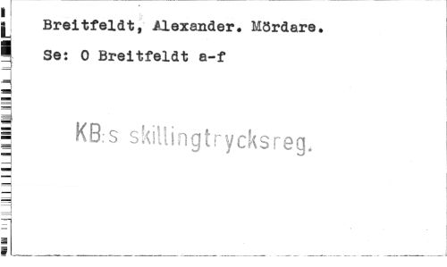//// 11 //// j Breitfeldt, Alexander. Mördare. //// ¦ Se: O Breitfeldt a-f //// | KB s skiUingtrycksreg. ////
