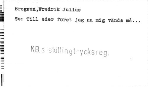 //// Brogeen,Fredrik Julius | Se: Till eder först jag nu mig vända må... //// m //// I KB.s skiUingtrycksreg, //// -! 3 //// H //// ? //// I! ////
