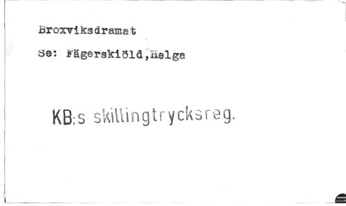 //// Broxvtksdramat //// öe: iägerskiöld,Helga //// KB:S skiUingtrycksreg. //// å ////