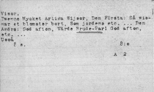 //// Visor. //// T*«rtns Mycket Artiga Wijsor, Den Första; Så wia-nar et bl ornater bort, Som jordans etc. ...Ben Andra; God afton, Tärde Brude-Farl God af t or, //// . i p *» " »mwwuaiu //// 6 - C ... » //// U ooa //// f s. 8 ; o //// A 2 ////