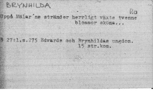 //// • kfcVMaiLkA, //// i (a //// EJppå Mälar'n® stränder herrllgt växte tvenne //// blommor skona... //// B 27:l«s,275 Bdvards och Brynhildas ungdom. //// 15 3tr.kom. //// m ////