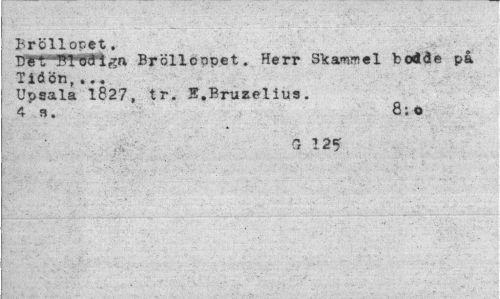 //// Bröllopet * //// IfBTTSWWga Bröllcnpet. Herr STcammel bodde på Tidön,... //// Upsala 1827, tr. S.Bruzelius. //// 8;o //// G 12? ////