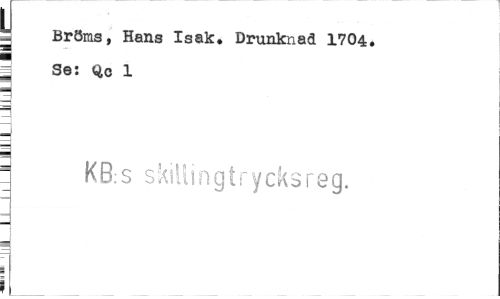 //// I Bröms, Hans Isak. Drunknad 1704. | Se: Qc 1 //// g //// : KB: s skiilingtry eks reg. //// i ////