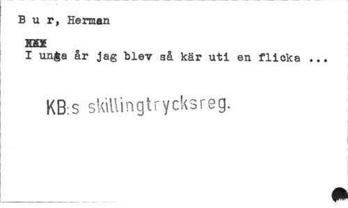 //// Bur, Herman HSK //// I unga år jag blev så kär uti en flicka ... //// KBs s killin gir y eks re g. ////