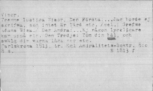 //// visor. //// lust iga "'i .»cr. Der Fö na ta ; . . ..lar* borde ej s;crif*5i. so:- l itet 'ir lärd etc. /rei-. ' Srefwe vi a ns Der And ra: . ., % j någon lyek! igare //// <a." ur oå e * r . Den Tredje: Tor; din bål, o-ch s«H!;t ..iir» * trs-i låp-i »K-.r «tc , //// "-irlakrona l5lj . tr. Kel acj i ra 111 e t s-B o.k t r. 8:0 //// a £ 1813 f ////