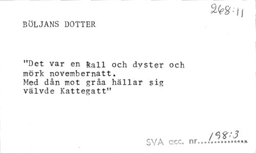 //// m-n //// BÖLJANS DOTTER //// "Det var en fcall och dyster och mörk novembernatt. Med dån mot gråa hällar sig välvde Kattegatt" //// 3 //// SVA ecc. nr.../...% ////