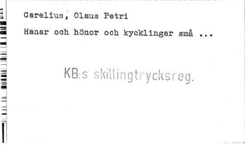 //// i //// i Carelius, Olaus Petri i Hanar och hönor och kycklingar små ... //// g //// | //// I KB.s skillingtrycksreg. //// S //// 3 _ //// I ////