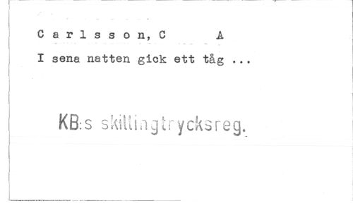 //// Carlsson, C A //// I sena natten gick ett tåg .., //// KB:s skiUingiryeksreg. ////