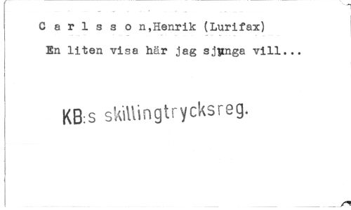 //// C a r 1 s s o n,Henrik (Lurifax) En liten visa här jag sjunga vill... //// KB:s skillingtrycksreg. ////