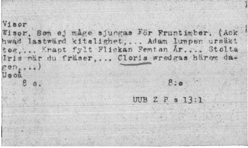 //// Visor //// Wisor, Som-ej måp;e sjunga» För Fruntimter. (Ack 1 hwarf lastw&rd kitslighet,... Adam lumpar ursäkt tog,.,... Knapt fy 11 Flickan Femtan kr., .. Stolta Iri» när du fräser,... Cloris vredgas härom da» //// ge*.• •.) ' //// U o o& //// 8;o //// UUB 2 P s 13;1 ////