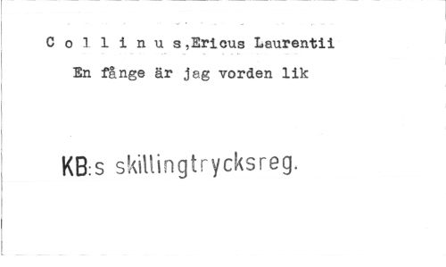 //// C o 1 1 i n u s,Ericus Laurentii En fånge är jag vorden lik //// KB:S skillingtrycksreg. ////