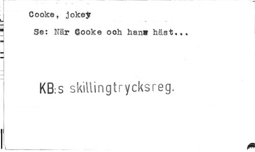 //// Cooke, jokejr 1 Se: När Sooke ooh han® häst... //// KB:S skillingtrycksreg. //// i ^ ////