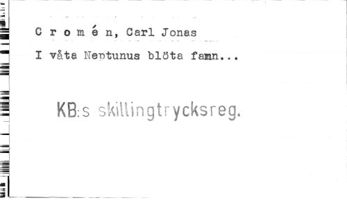 //// i / //// C r o m e n, Carl Jonas //// T I våta Nentunus blöta famn... i //// 1 KB:s skillingtrycksreg, ¦ ////