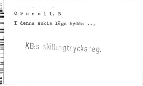 //// L //// t Crusell, B //// -¦ I denna enkla låga hydda ... //// 1 KB:S skillingtrycksreg, //// m | ////