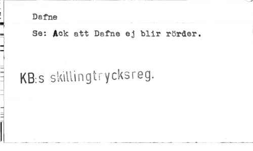 //// Dafne //// . Se: Ack att Dafne ej blir rörcler. //// | //// 1 KB:S skiilinglrycksreg. ////