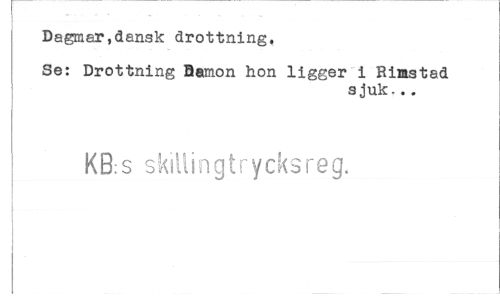 //// Dagmar,dansk drottning. //// Se: Drottning Bamon hon ligger i Rimstad //// sjuk-.. //// KB:s skillingtrycksreg. ////