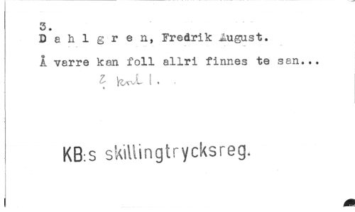 //// 3. //// Dahlgren, Fredrik August, i värre kon foll allri finnes te san... //// £ fe*X I . . KB:S skillingtrycksreg. //// I m ////