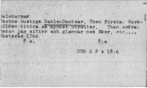 //// Jaledarsar | //// ?i?enne listig© Dahla-Dantsar, Then Första. Kord-ölden bittra smycket TTTmter, Then Andra: [edan jag sitter och glammär med Eder, etc...* fäs t eras 1766 //// 8 8. 8i C //// UUB Z P s 18:6 " ////