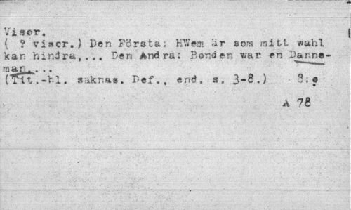 //// Visor. //// { ? visor.) Pen Första; KWeat är »ora raitt wahl kan hindra,... Den Andra; Bonden war en Danne-man. . .. //// (TiT.-hl. saknas. Def., end. s. 3-8.) 8;e //// A ?g ////