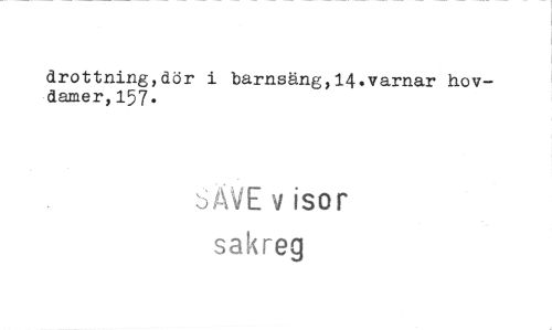 //// drottning,dör i barnsäng,14.varnar hovdamer, 157. //// 6ÄVE v isor //// sakreg ////