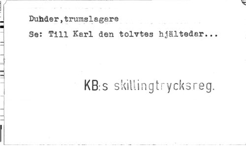 //// DuMer, trumslagare //// Se: Till Karl den tolvtes hjältedar... //// KB:S skillingt rycks reg. ////