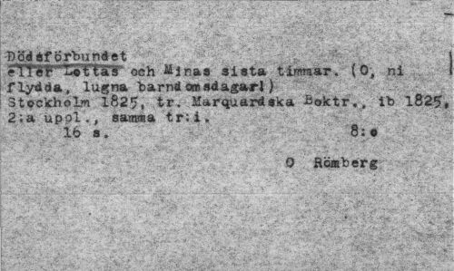 //// - //// 6 yrr-.; ¦ " " tiSfe^V? jr. //// BödSfprbundet //// el!'W""Utl4r och Minas sist» timmar, (O, ni - flydda, lugna harnd omsdagarl) //// Stockholm 1825, tr. Marquardska Boktr.. ib 1825» 2;a upol., samma t r; i . //// 16 s. 8:« //// O Hornberg ////