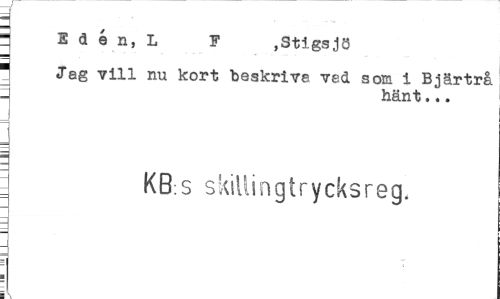 //// ¦ Idén.I F ,Stigsjö //// ¦ Jag vill nu kort beskriva ved som i Bjärtrå i hänt,.. //// = KB:S skillingtrycksreg. ////