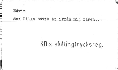 //// : //// j Edvin ¦ //// Se: Lille Edvin är ifrån mig faren... //// KB:S skillingtrycksreg. ////