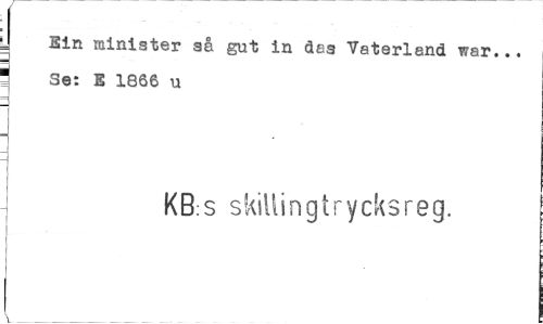 //// J Sin minister så gut in des Vaterlend war... //// i Se: E 1866 u //// i //// i KB:S skillingirycksreg. ////