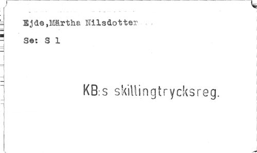 //// _ Ejde,Märtha Nilsdotter " Se: S 1 //// KB.s skillingtrycksreg. ////