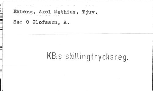 //// ...- -... - //// Ekberg, Axel Mathias. Tjuv. 3 Set O Olofsson, A. //// KBs skillingtrycksreg. ////