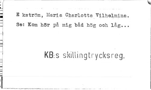 //// = E kström, Maria Charlotta Vilhelmina. //// ; Se: Kom hör på mig båd h5g och låg... //// ~ KB:S skillingtrycksreg. //// 1 ////