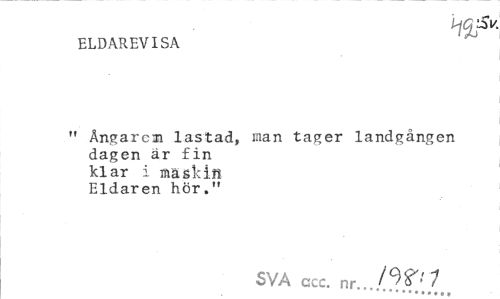 //// IfQjSv //// ELDAREVISA //// " Ångarem lastad, man tager landgängen dagen är fin klar i aagkifi Eldaren hör." //// SVA ccc. nr., 1 ////