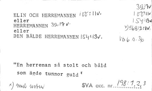 //// WW //// ELIN OCH HERREMANNEN W' \ OVH" eller . . //// HERREMANNEN ^ ' Y J' W //// eller //// DEN BÄLDE HERREMANNEN 13»/. ^ //// "En herreman så stolt och båld som ägde tunnor guld " //// *) (yvni 4niw sva ccc- ^.J.?}?.:.!>.?.{3 ////