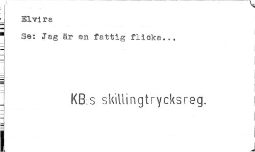 //// Elvira //// 1 Se: Jag är en fattig flicka... //// ~ KB s skillingtrycksreg. //// I ////