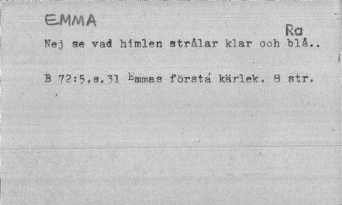 //// Ra //// NTej se vad himlen strålar klar och blå.. B 72:5.8.31 ^mrnas första kärlek. 8 str. ////