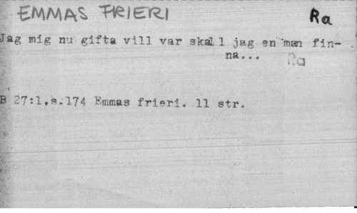 //// IHSieRt JW //// Jag Blig nu gifta vill var skaL 1 jag en man fin- . //// nsi»«« . .. //// ^ * y //// . r //// B 27:1174 Emmas frieri. 11 str. //// Sf» //// H" ////