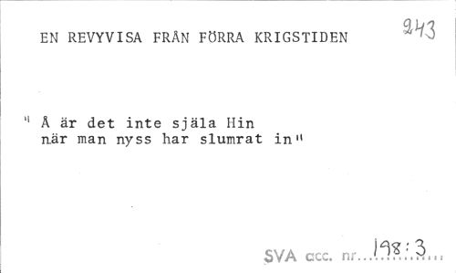 //// EN REVYVISA FRÅN FÖRRA KRIGSTIDEN //// 11 Å är det inte själa IIin //// när man nyss har slumrat in11 //// SVA ccc. nr...U?.\3.., ////