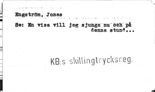 //// Engström, Jonas //// i //// Se: En visa vill jag sjunga nu och på //// denna stun*... //// KB:S skillingtrycksreg. //// I ////