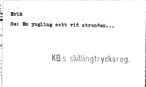 //// i Erik i //// Se: En yngling satt via stranden... //// KB:S skillingtrycksreg. ////