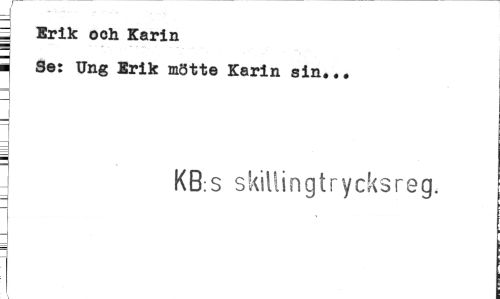 //// J //// -I //// 5 Erik och Karin //// Se: Ung Erik mötte Karin sin... //// j //// d | //// KB:S skillingtrycksreg. //// j ////