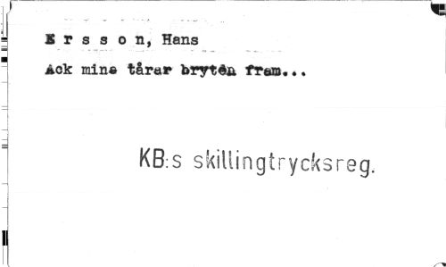 //// c //// g £ T s s o n, Hans //// Ack min* tårar brytéa fram... //// l //// KB:S skiilingtrycksreg. //// f ////