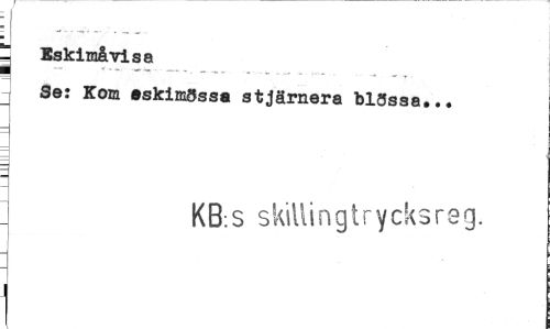 //// I Eskimåvisa //// - 3e: Kom »skimössa stjärnera blössa... //// _ KB:S skillingtrycksreg. ////