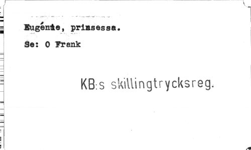 //// i Eugenie, prinsessa. Se: O Frank //// KB.s skillingtrycksreg. ////