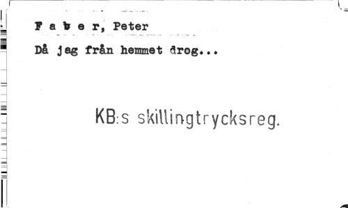 //// _ F a \t e r, Peter //// - Då Jag från hemmet årog... //// -4 //// i KB:S skillingtrycksreg. ////
