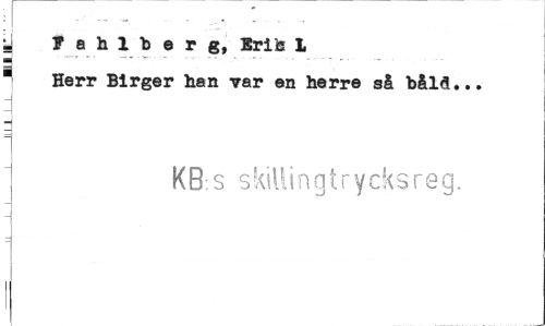 //// y yahlberg, Erife 1 ® Herr Birger lian var en herre så bålå... //// KB.s skillingtrycksreg. ////