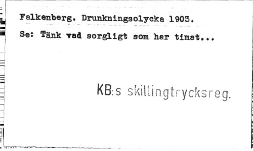 //// Lj Falkenberg. Drunkningsolyoka 1903. //// 1 Se: Tänk vad sorgligt som har timat... //// I //// ä H d //// ] KB:S skillingtrycksreg. //// n i //// _ //// 3j ////