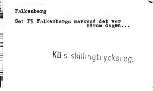 //// l Falkenberg //// i :;:: //// Sei Få Falkenbergs marknad det var //// härom dagen... //// 3 KB:s skiilingtrycksreg. i___ ////