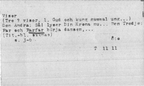 //// Vi s or //// (Tre ? visor. 1. Gud och kur» »airaal un?,,,) Den And ra; Sal lyser Din Krona nu... ""en Tredje; Far och Farfar börja dansen,... (Ti t .-bl ."ifViaa) //// s. 3-6 - P-o //// T 11 11 //// ¦ ////