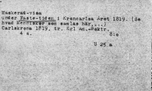 //// Maskerad-vi»a //// under Faste-tide^i Kroncarlea Aret 1819. I Se hvad Ifernmrrir^sem eamlae här, ...) Carlekrona 1819, tr. 1 J»a.~b«ktr. . A «. 8:0 //// u 25 & //// '•'• ' - »• . O,'" "" • • "• ' t -* //// ¦ -- • - • • ' ' - - V , " _ a* ,*"•'.' v--.' '-* '.'.• ' - ////